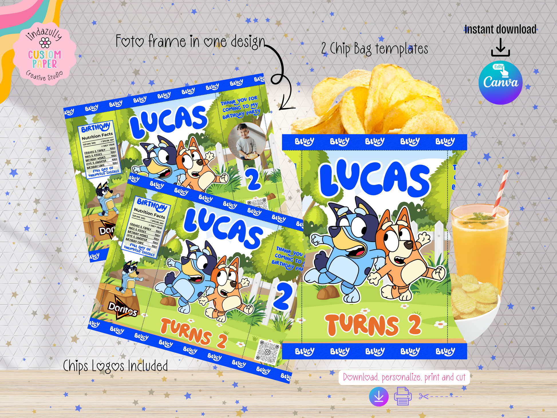 Chip Bag Wrapper- 2 designs, with or without photo frame