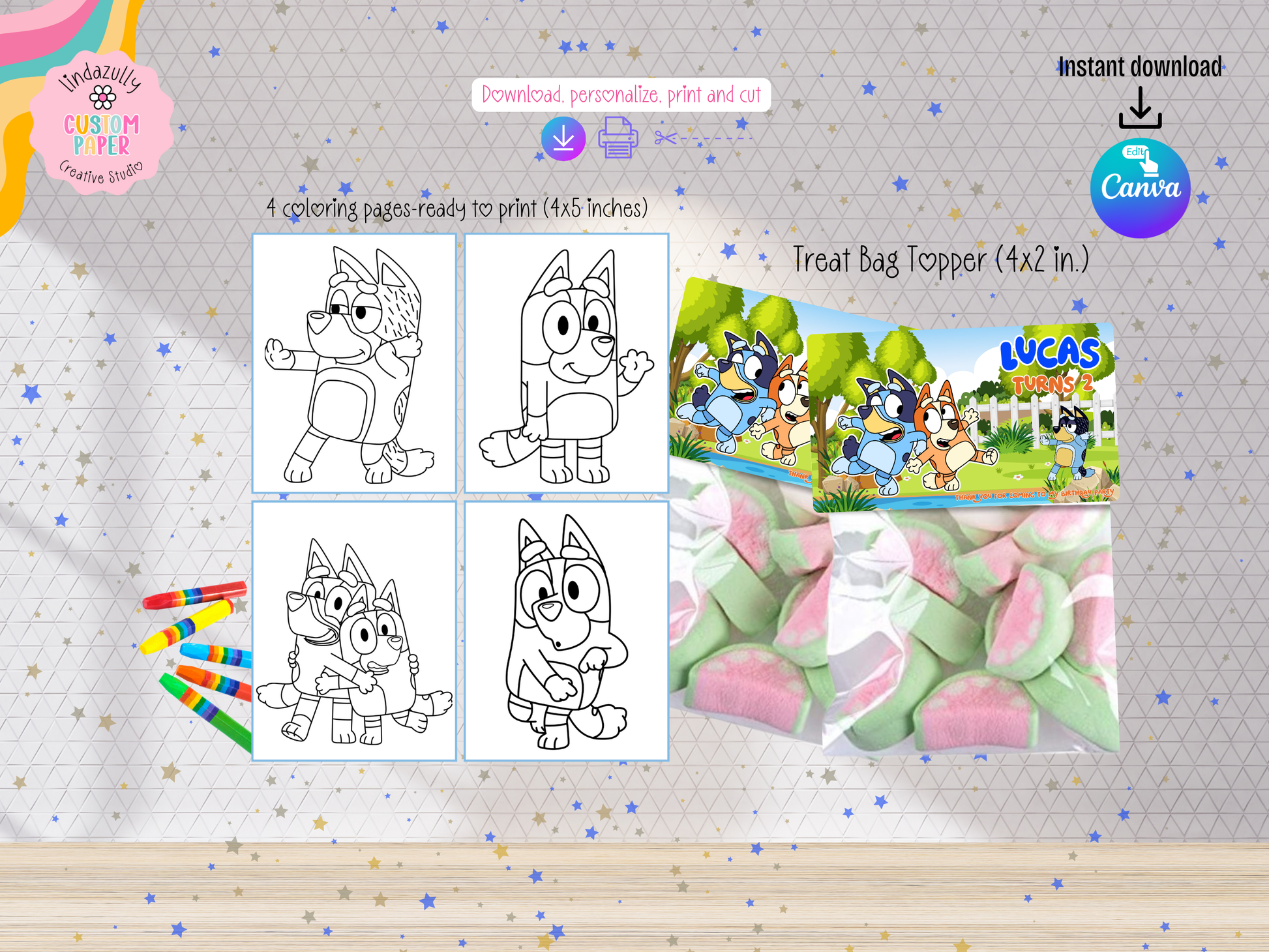 Blue Dog Cartoon Inspired Birthday Party Bundle- Printable Canva Editable