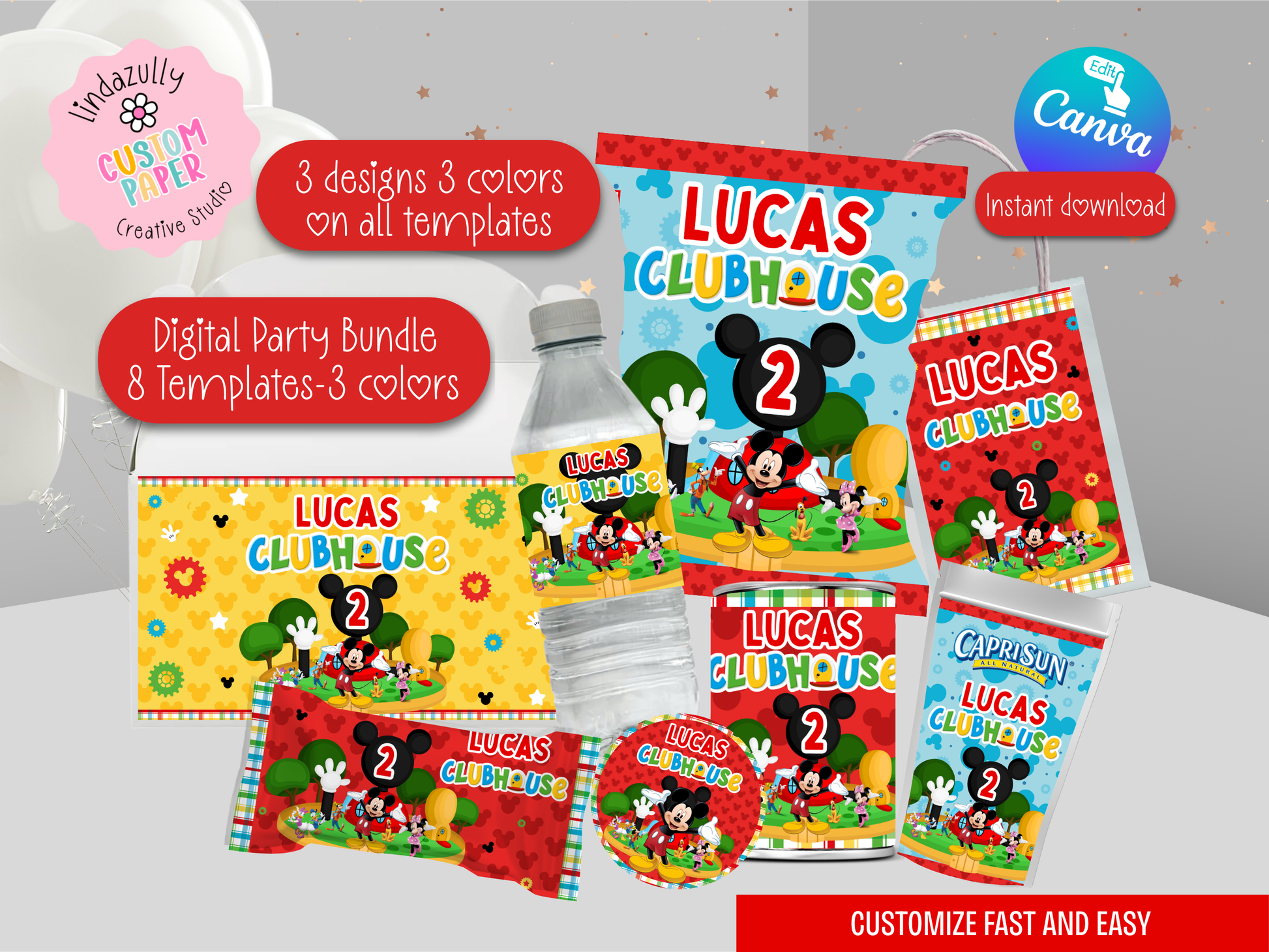 Mickey Mouse Clubhouse Party Bundle (Digital Download) Editable in Canva INTRO PRICE