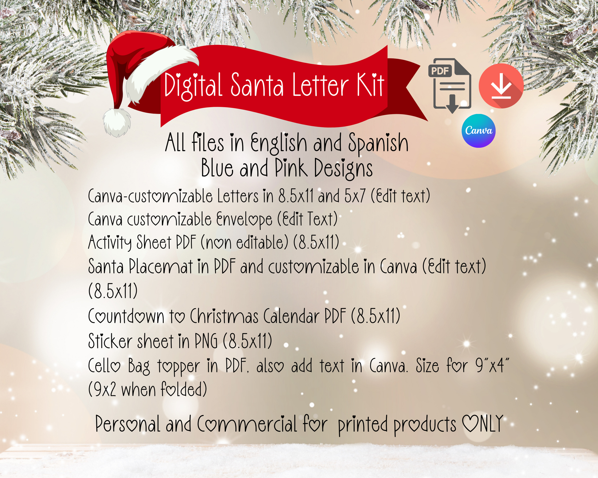 Santa Letter Kit - Digital Download (Personal and Commercial use) English and Spanish